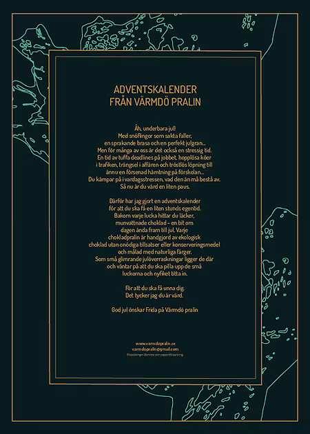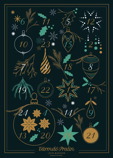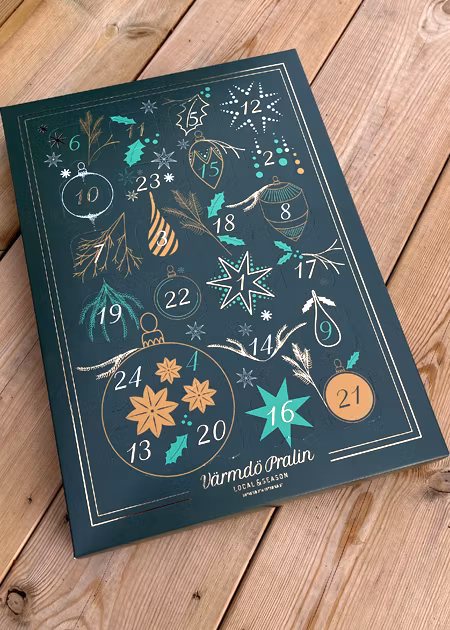 Årets julkalender är specialdesignad av designer Jenny Almén exklusivt för Värmdö pralin.